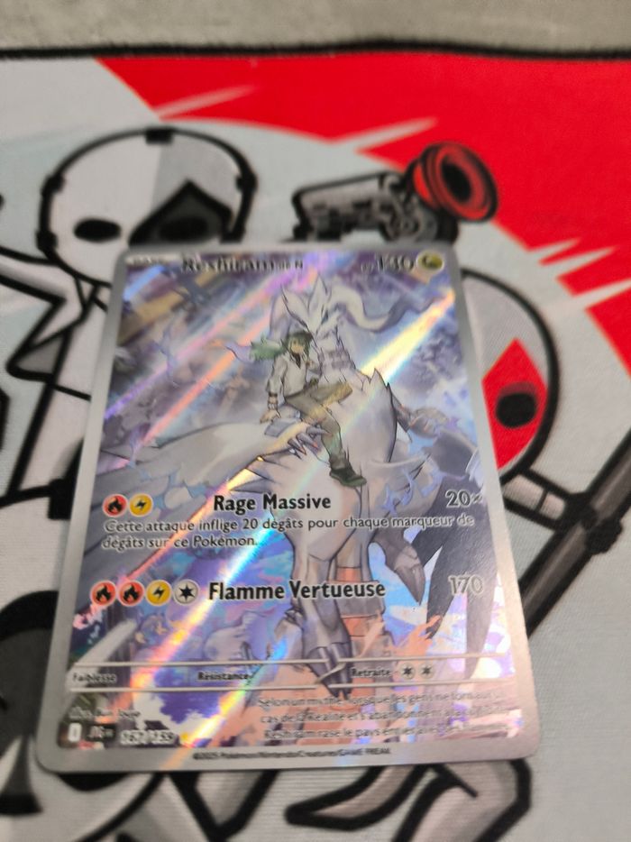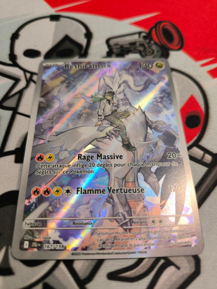 Bonjour je vends cette carte pokémon de Reshiram de N full Art 167/159 JTG aventures ensemble état parfait sortie de booster merci
