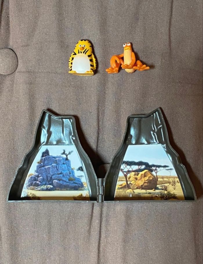 Petites figurines de Al le crapaud orange et Maurice le guerrier tigre des As de la jungle à la rescousse. Collection mini monde, compatibles avec le volcan qui fait de la fumée. Hauteur : 3,5 cm environ Les figurines se rangent dans le décor qui représente le volcan. Plein d’autres figurines des as de la jungle, n’hésitez pas à me contacter