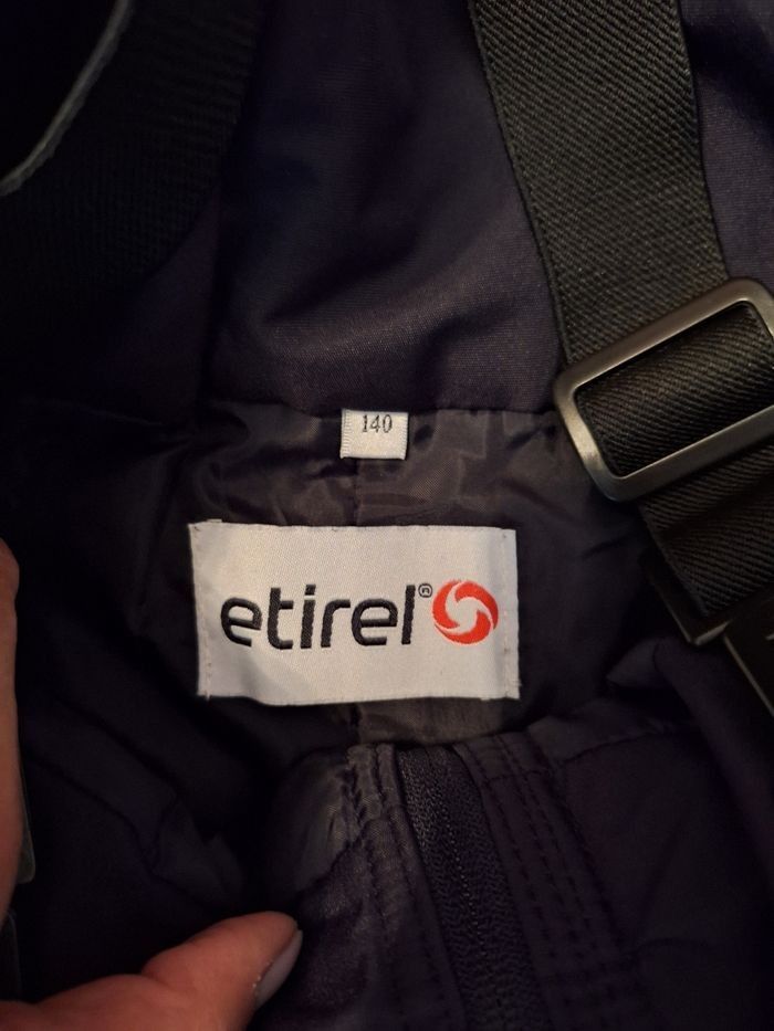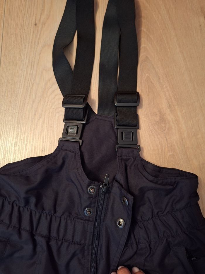Salopette de ski 140cm 10 ans très chaude Etirel excellent état noir à bretelles et fermetures éclair, 2 poches, avec quelques micro traces d'usure sur un genou - photo numéro 5