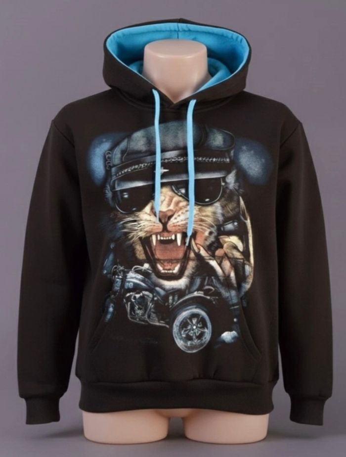 Sweat à capuche noir et imprimé 3D léopard tendance homme taille S Desquartu - photo numéro 1