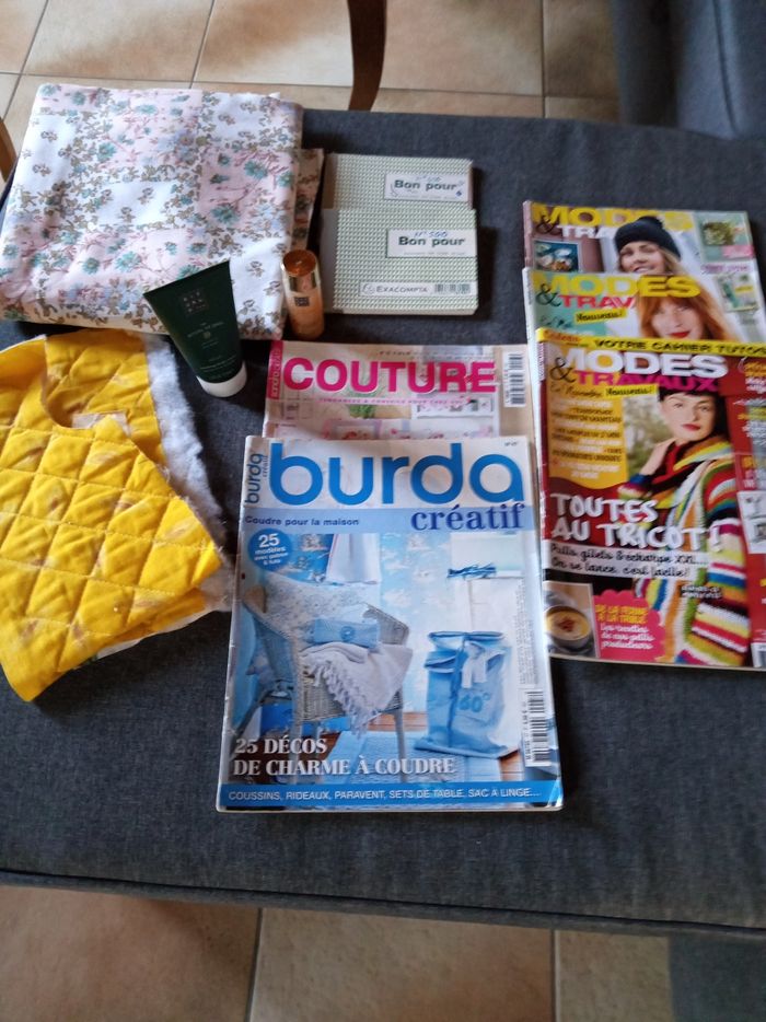 3 modes et travaux bon état 2 magazines couture bon état 2 carnets de bons état moyen Tissu neuf Produits Rituals neufs