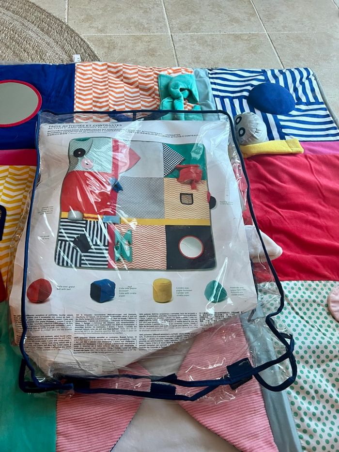 Ce tapis est en très bon état manque juste une balle bleu marine.