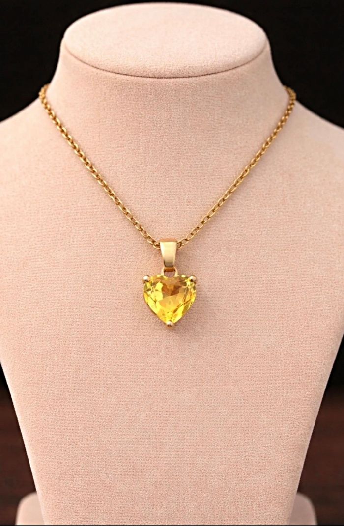 Superbe collier neuf doré pendentif jaune cœur vendu avec pochon