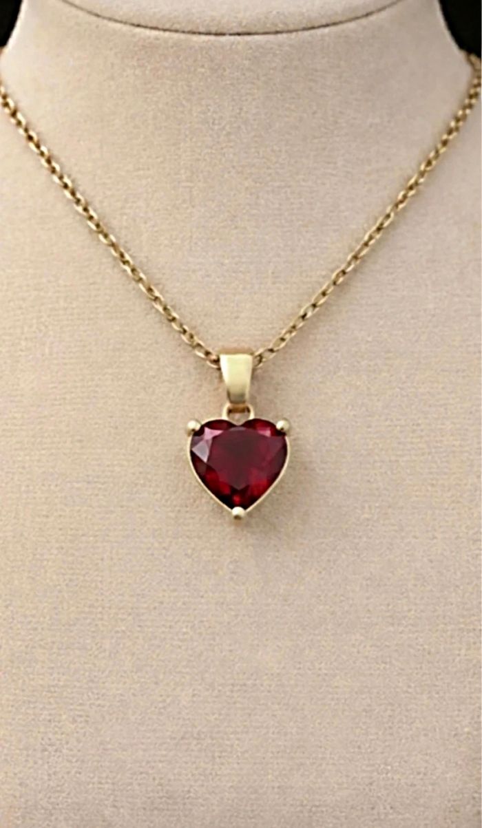 Superbe collier neuf doré pendentif rouge cœur vendu avec pochon