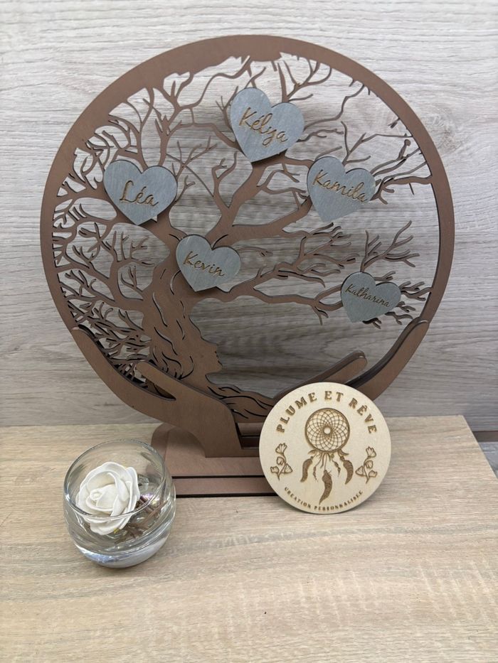 ✨ Arbre de Vie Personnalisé – Création Artisanale en Bois Offrez un cadeau unique et symbolique avec cet arbre de vie entièrement façonné à la main, réalisé dans un bois soigneusement sélectionné pour sa beauté naturelle et sa durabilité. Chaque pièce est sculptée avec précision, rendant chaque arbre absolument unique. 🎁 Une personnalisation qui a du sens Ajoute le nombre de prénoms de ton choix : famille, enfants, petits-enfants, couple, amis… L’arbre devient alors un véritable symbole de lien, de transmission et d’amour. Chaque prénom est délicatement intégré dans les branches pour former une harmonie parfaite. 🌿 Un socle en bois fait main Le socle, travaillé avec la même minutie, assure une stabilité élégante et met en valeur la finesse de l’arbre. Il permet d’exposer la pièce dans n’importe quel intérieur : salon, bureau, chambre, entrée… ✨ Caractéristiques : • Fabrication artisanale 100 % fait main • Bois naturel, travaillé, poncé et protégé • Arbre personnalisable avec prénoms illimités • Socle en bois assorti • Idée cadeau idéale : naissance, anniversaire, mariage, fête des mères/pères, Noël… 🌟 Un objet déco chargé d’émotion Plus qu’une simple décoration, cet arbre de vie raconte une histoire : la vote