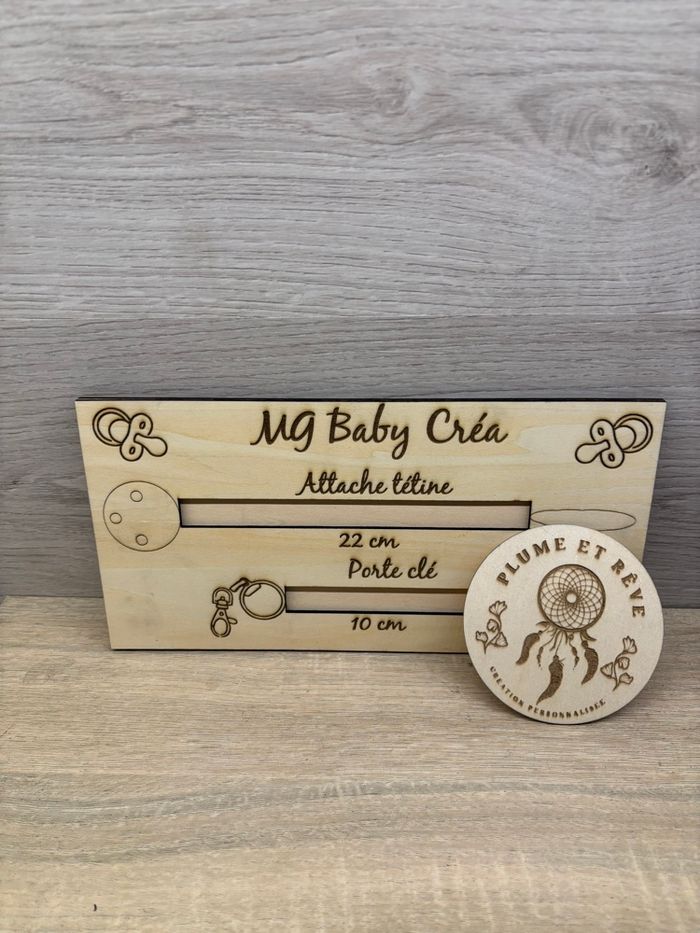 ✨ Planche gabarit en bois – 27 x13,5cm – Parfaite pour créatrices et artisans ✨ Cette planche gabarit est l’outil idéal pour réaliser facilement et avec précision vos attaches tétine, colliers d’allaitement, porte clé et anneaux de dentition. Toutes les tailles indiquées respectent les normes en vigueur, afin de vous garantir des créations sûres et conformes. 🪵 Caractéristiques : • Dimensions de la planche : 27 ×13,5cm • Emplacements dédiés pour : – Attache tétine (22 cm) – Collier d’allaitement – Anneau de dentition (7 cm) – Zone pour vos perles _ porte clé (10cm) • Gravure nette et lisible • Bois de qualité, durable et facile à manipuler Personnalisation totale : Les catégories sont modulables selon vos besoins : c’est à vous d’organiser le gabarit comme vous le souhaitez. Le nom de l’entreprise est entièrement personnalisable, vous pouvez donc y apposer votre propre logo ou marque. 📩 Pour toute question ou demande spécifique, n’hésitez pas à me contacter !