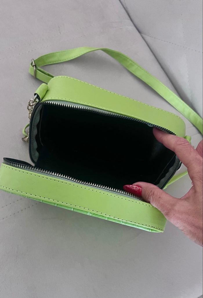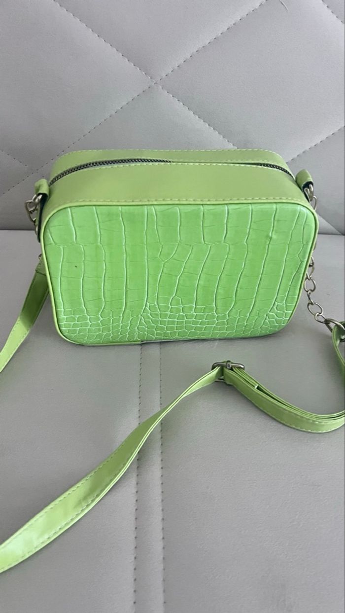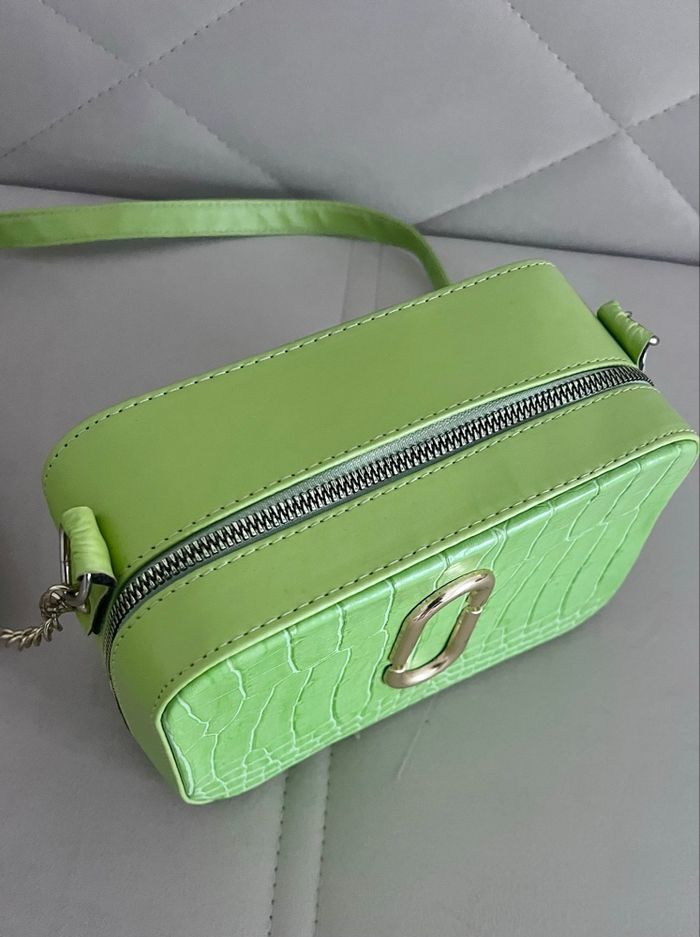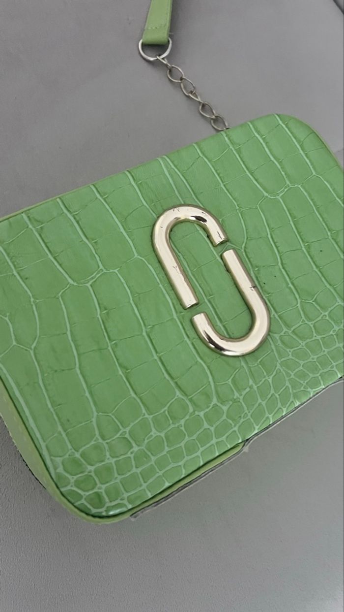 Sac vert rigide Et logo doré Effet crocodile Je vends d’autres sacs Je réponds rapidement aux messages Envoi rapide et soigné