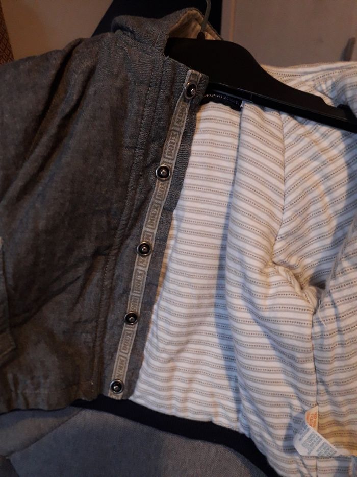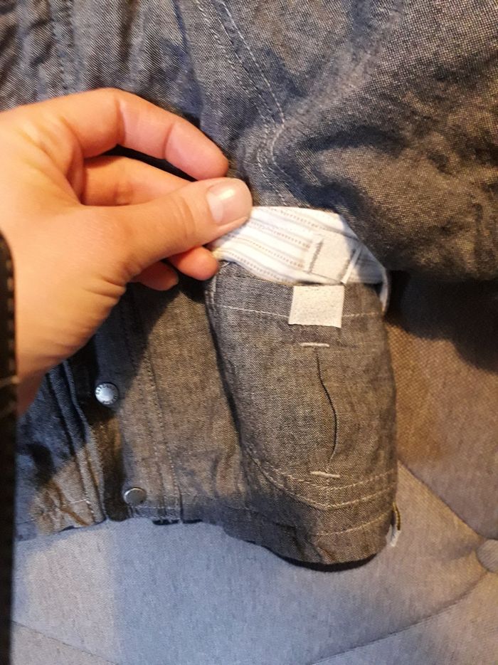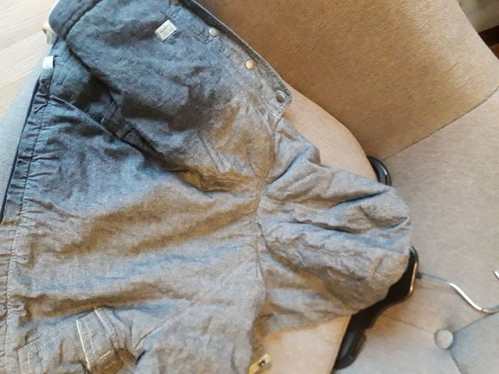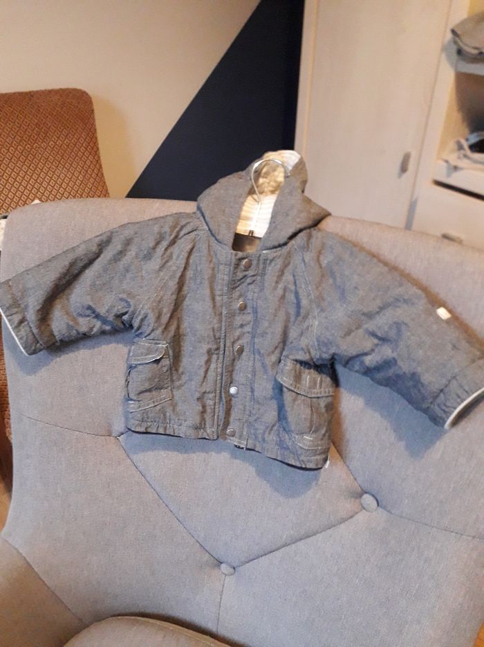 Joli manteau, fermeture avec boutons pressions et poches à scratchs. Couleur gris bleu.