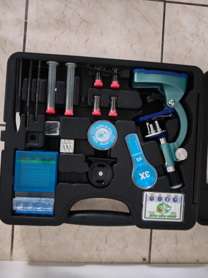Je vends ce coffret microscope éducatif pour enfants de 7 à 12 ans. - Type de produit : Jeux éducatifs - Âge recommandé : De 7 à 12 ans - Accessoires inclus : Microscope, lames, pipettes, loupes, et autres accessoires de laboratoire État neuf. Un excellent outil pour découvrir la science de manière ludique ! N'hésitez pas à me contacter pour plus d'informations.