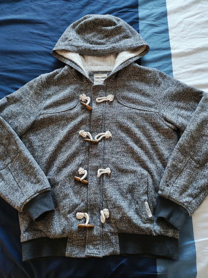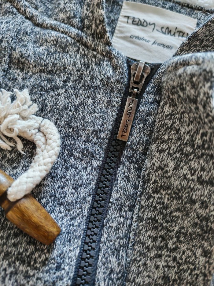 Veste chaude et confortable avec doublure polaire, capuche et fermeture à brandebourgs. Couleur gris chiné, très bon état, aucun défaut. Idéale pour l’automne/hiver. #teddysmith #vestehomme #vestepolaire #vestehiver #tailleL #modehomme