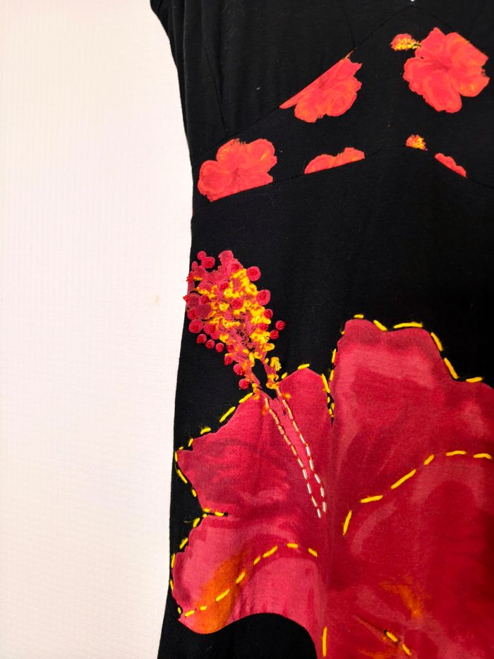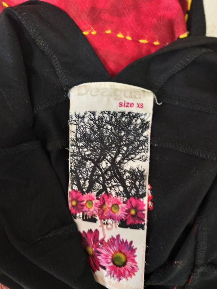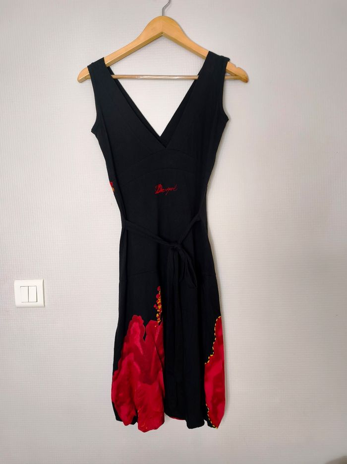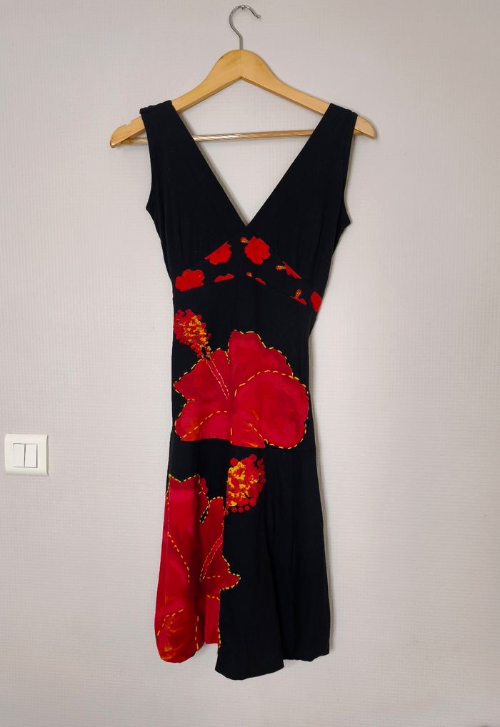 Robe coquelicots Desigual Taille XS Noire avec détails perles et broderie
