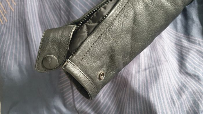 Veste de moto blouson motard en cuir noir et blanc taille XL avec doublure et protections - photo numéro 5