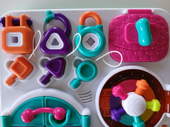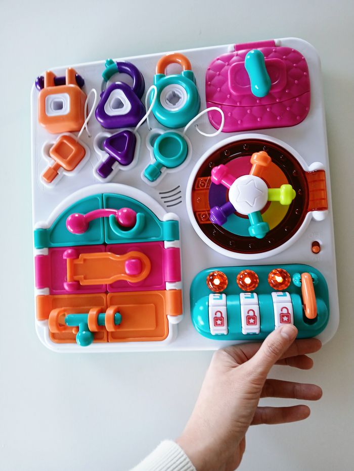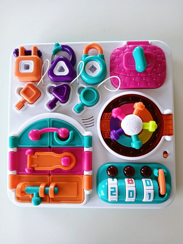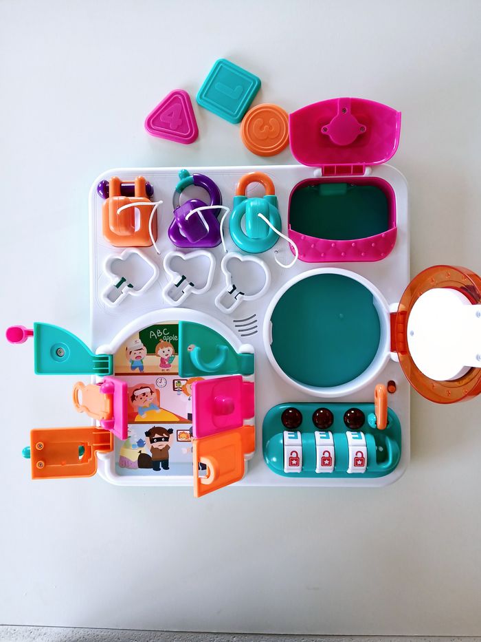 Un tableau d'activité très rigolo autour des cadenas pour développer la motricité fine, la pensée logique, et se familiariser avec les objets du quotidien. Le jeton chiffre 2 est fourni avec cf derniere photo. Valeur 40€. #jeuxjouetspeluchesetciegael