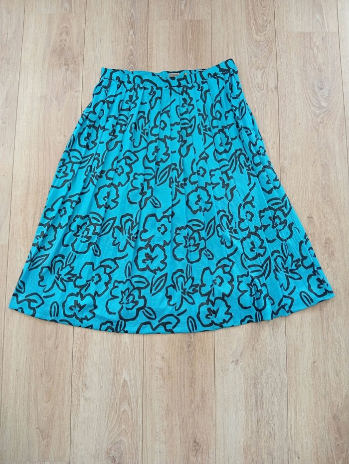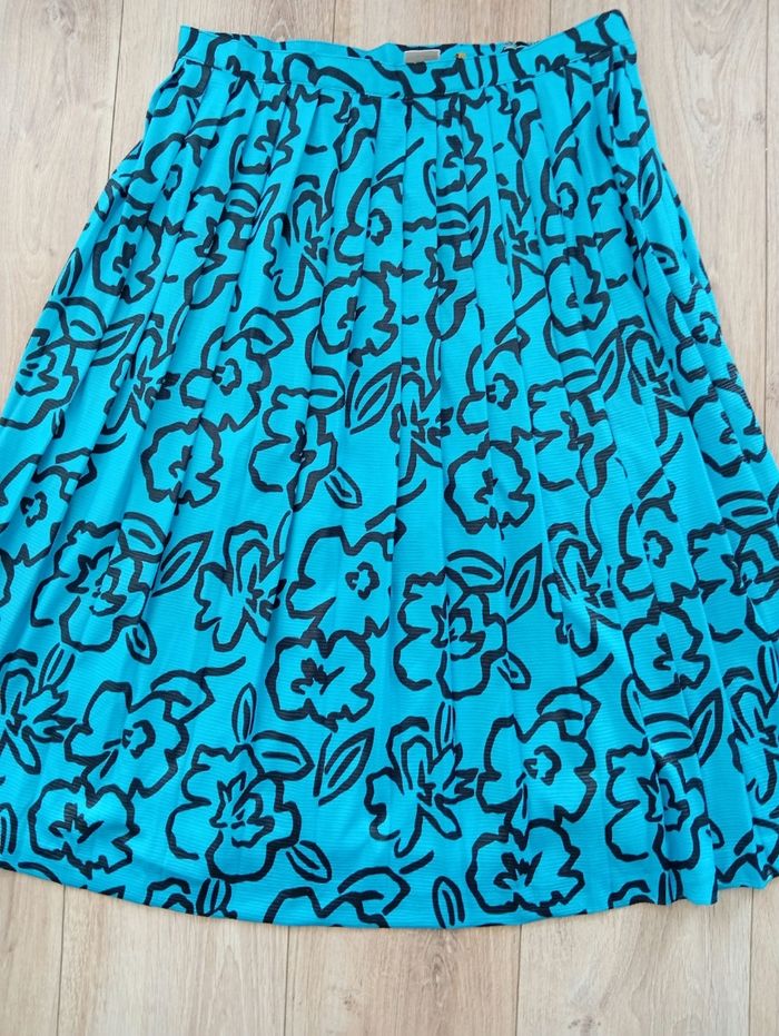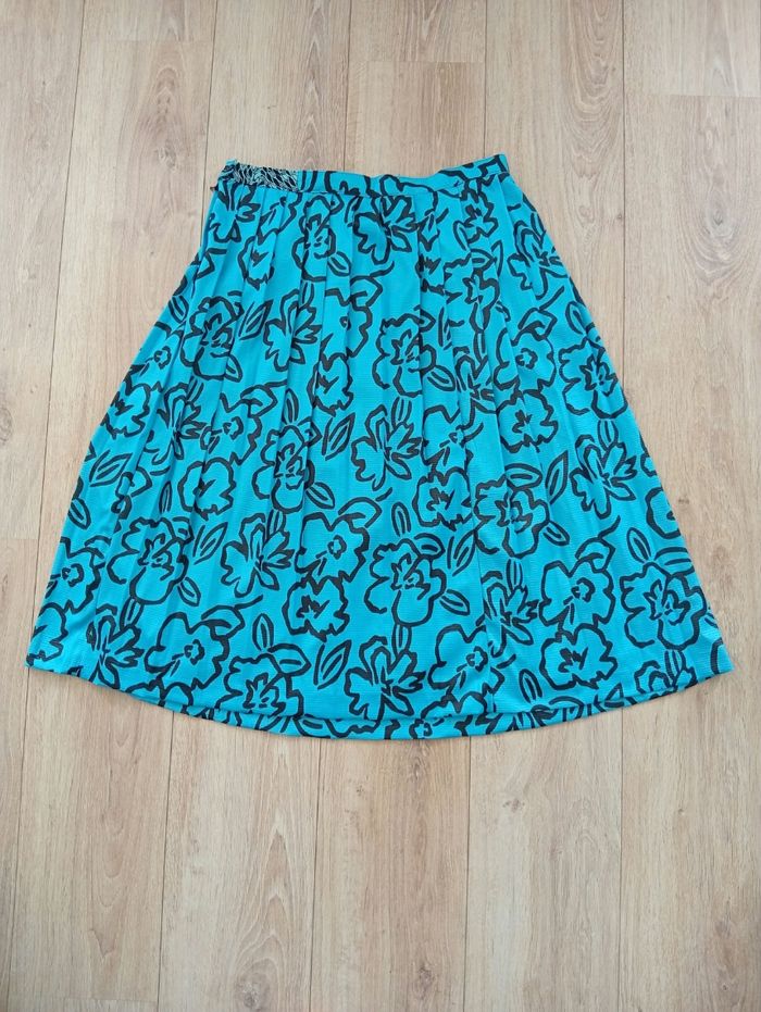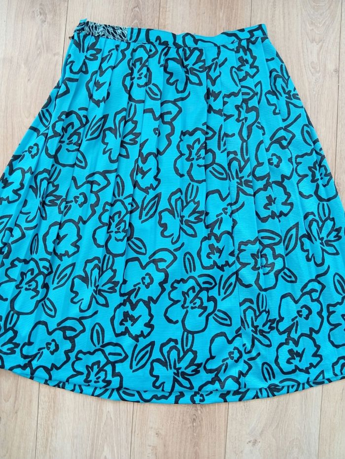 Jupe plissée turquoise à fleurs noires t40/42 - photo numéro 2