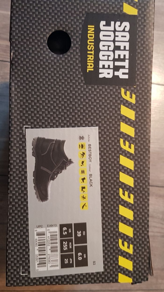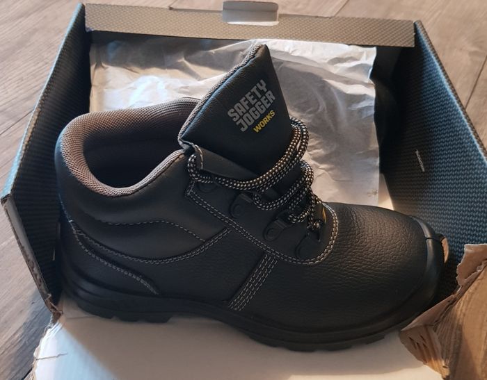Vends une paire de Safety jogger industrielles noires neuves taille 39 dans sa boîte d'origine et notice. Semelles résistantes, antidérapantes, amortissantes. Chaussures de sécurité imperméables avec embouts de protection.