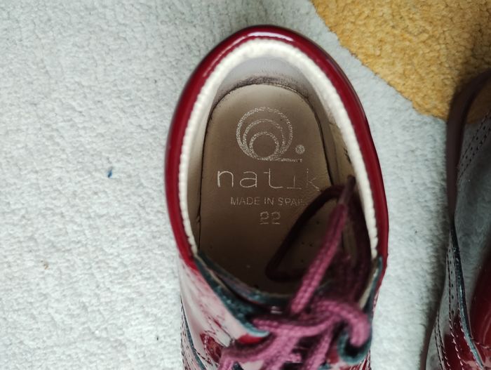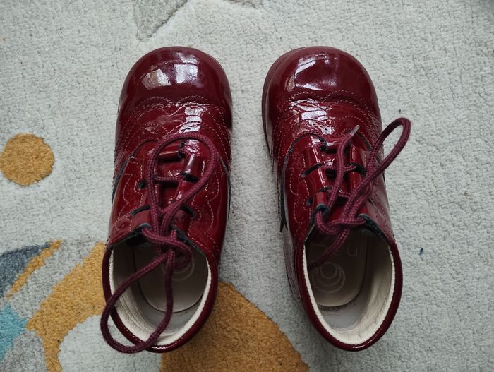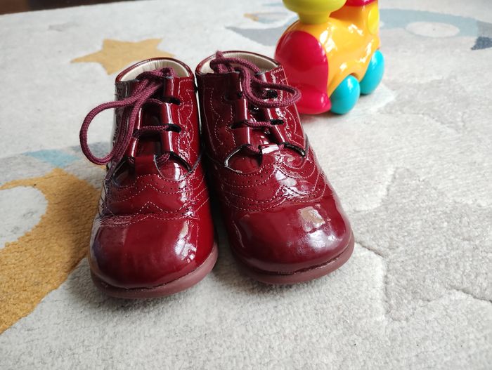 Adorables petites bottines bébé en cuir verni avec doublure intérieure 100% cuir, parfaites pour un look chic élégant ou une occasion spéciale. Elles ont été portées mais restent en bon état général. Marque : Natik Taille 22 – Couleur bordeaux. D'autres articles de bébé par taille pour faire un lot: #marinalille_Baby12m #marinalille_Baby18m #marinalille_Baby24m