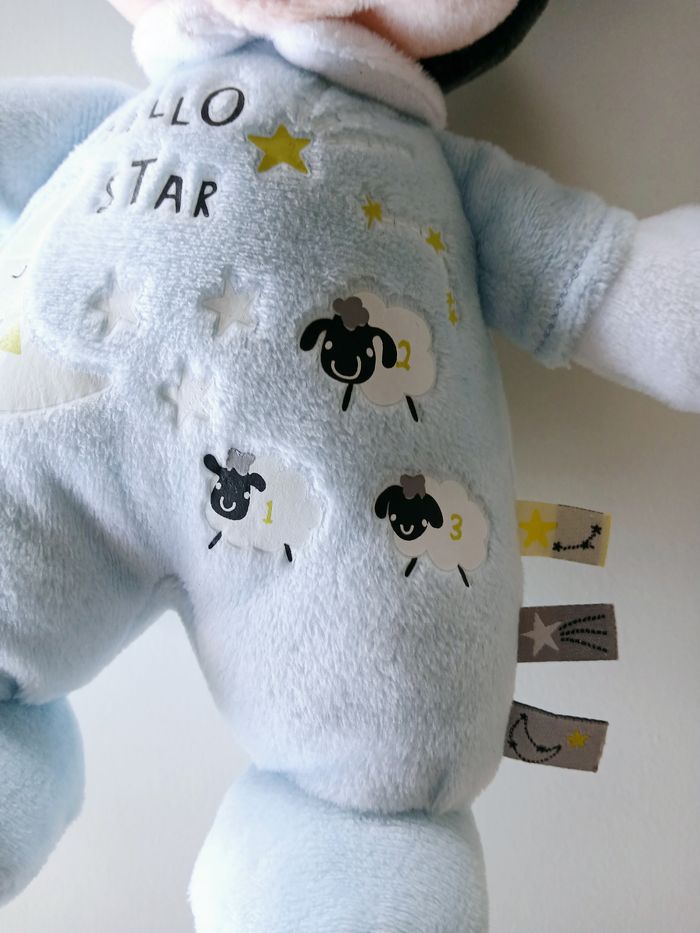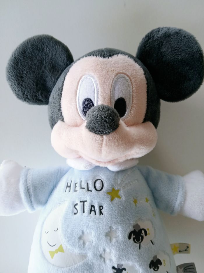 Peluche Mickey hochet avec motifs qui brillent dans le noir. Excellent état. Disney baby. #maternitépuericulturegael #jeuxjouetspeluchesetciegael