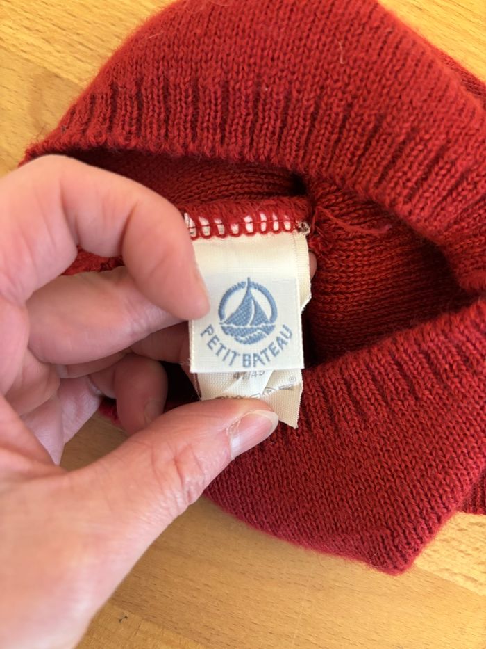Bonnet en maille 51% laine 49%acrylique Petit Bateau 47-49 cm de tour de tête Coloris rouge brique
