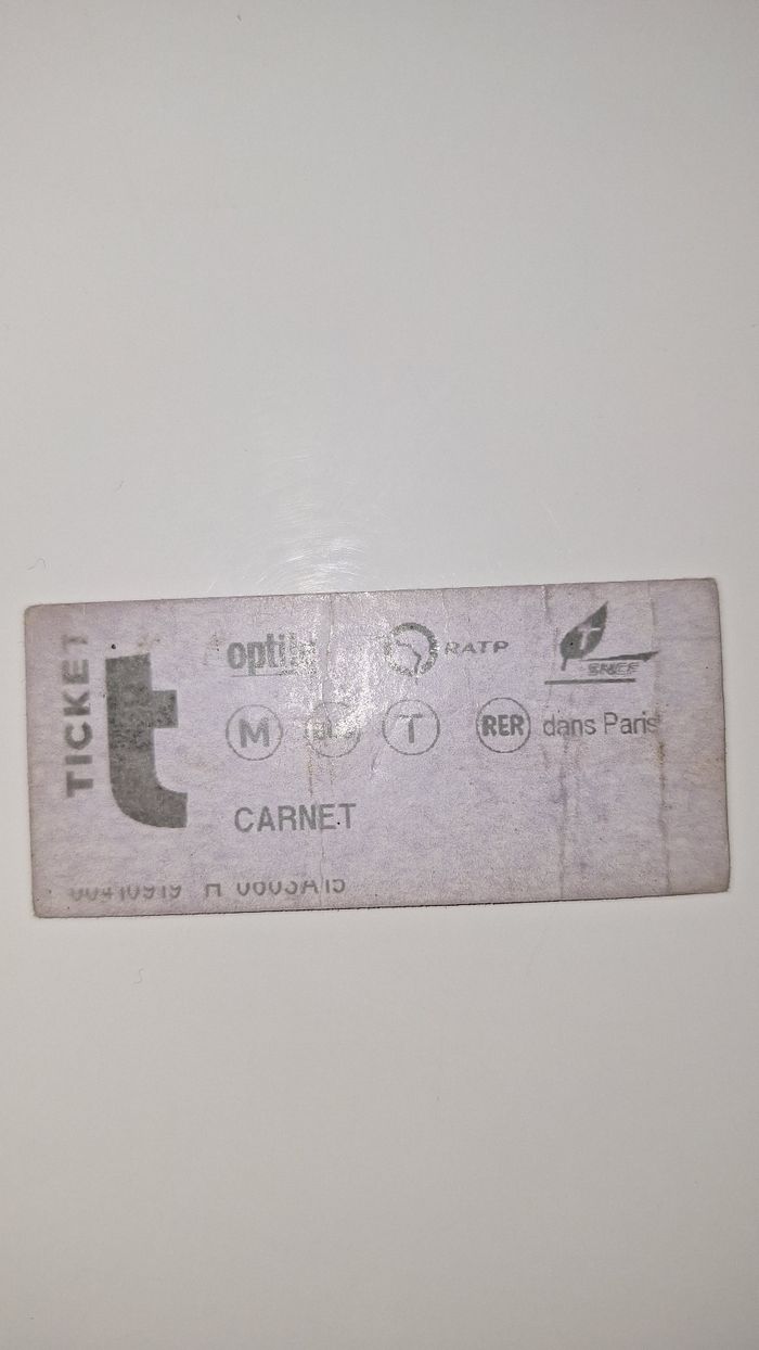 Ancien ticket de Métro des transports parisiens pour collectionneurs avec quelques petites traces de vétusté