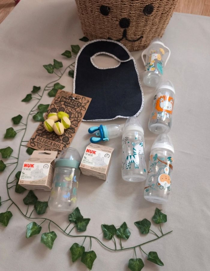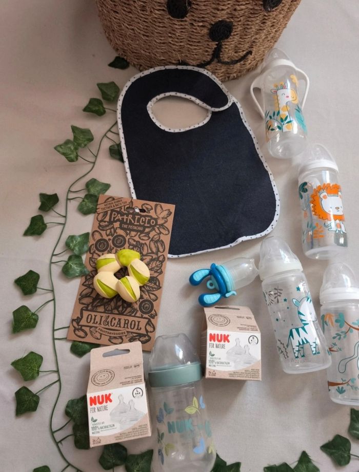❌️MAISON NON FUMEUR ! ❌️VÊTEMENTS DE 1ER MAIN •jouet de dentition pistache oli & carol • un bavoir •Biberon NUK for Nature avec Temperature Control en très bon état + 2 tétines neuve en S et L •Lots de 4 biberons juste lavé jamais servi •1 Biberon Transition+ 300ml avec Alerte température •1 Biberon Transition+ NUIT 300ml qui est phosphorescent •1 Biberon Transition+ à poignées 360ml • 1 Biberon Autonomie+ 300ml • une grignoteuse