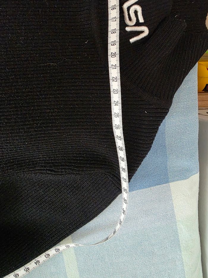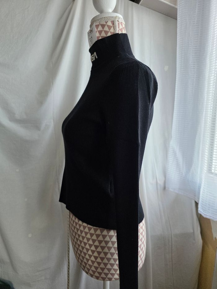 Tee-shirt, noir,col montant, crop top, en très bon état, largeur d'épaule 32cm, largeur sous bras 39cm, longueur 44cm,en acrylique/viscose/ polyamide,marque Nasa/H&M =5€ - photo numéro 7