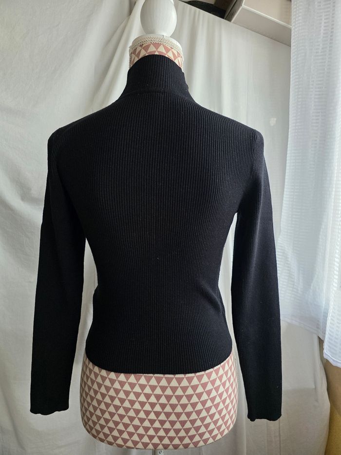 Tee-shirt, noir,col montant, crop top, en très bon état, largeur d'épaule 32cm, largeur sous bras 39cm, longueur 44cm,en acrylique/viscose/ polyamide,marque Nasa/H&M =5€ - photo numéro 4