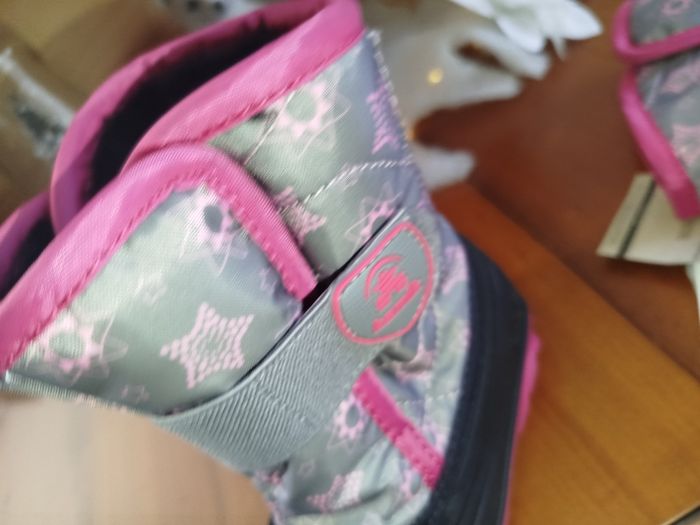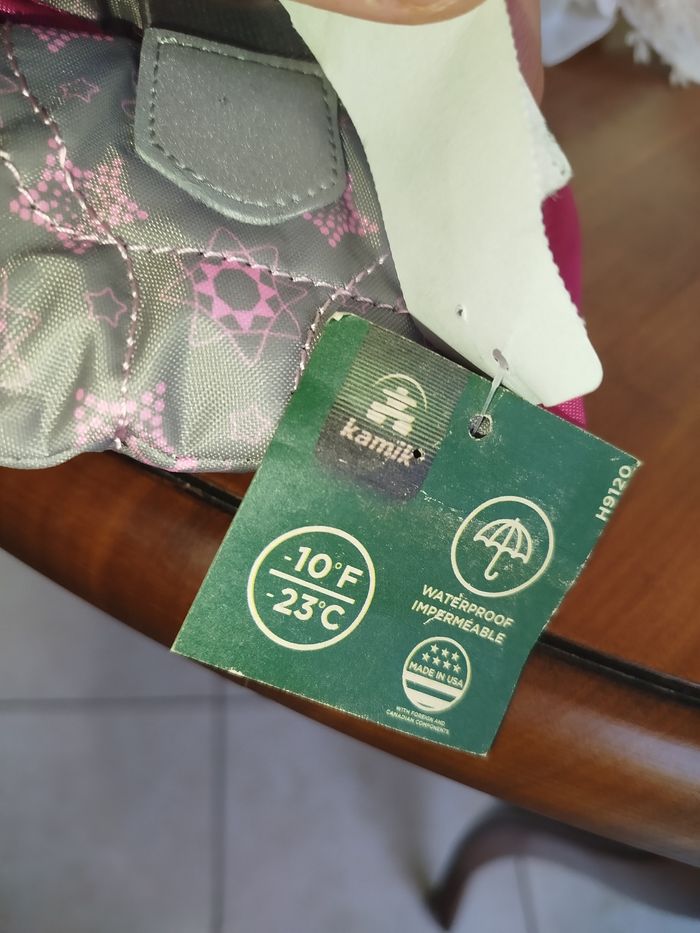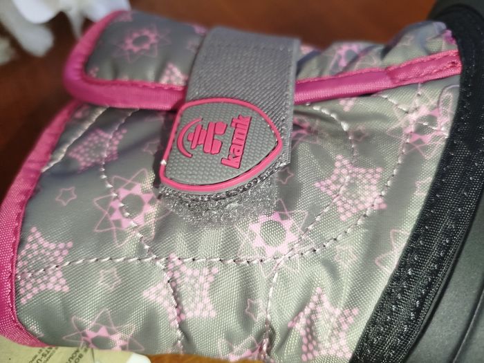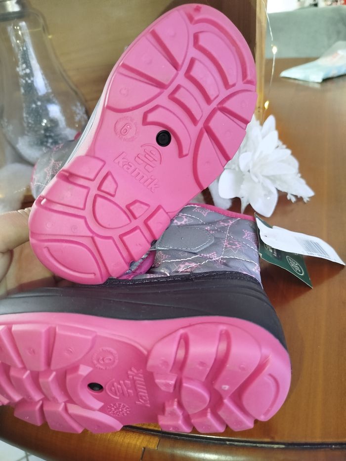 🥾 Bottes d’hiver Kamik – Fabriquées au Canada – Taille 22 EU (US 6) Bottes d’hiver Kamik pour enfant, de grande qualité, fabriquées au Canada. Conçues pour garder les pieds au chaud et au sec même par grand froid. Détails : • Marque : Kamik • Pointure : US 6 enfant • Équivalent : EU 22 • Longueur du pied : environ 13,5 cm • Température : jusqu’à -23°C • Imperméables (Waterproof) • Fabriquées au Canada • Couleur : gris et rose avec motifs • Semelles antidérapantes • Intérieur chaud et confortable État : Très bon état (voir photos) Idéales pour la garderie, l’école et toutes les activités d’hiver ❄️