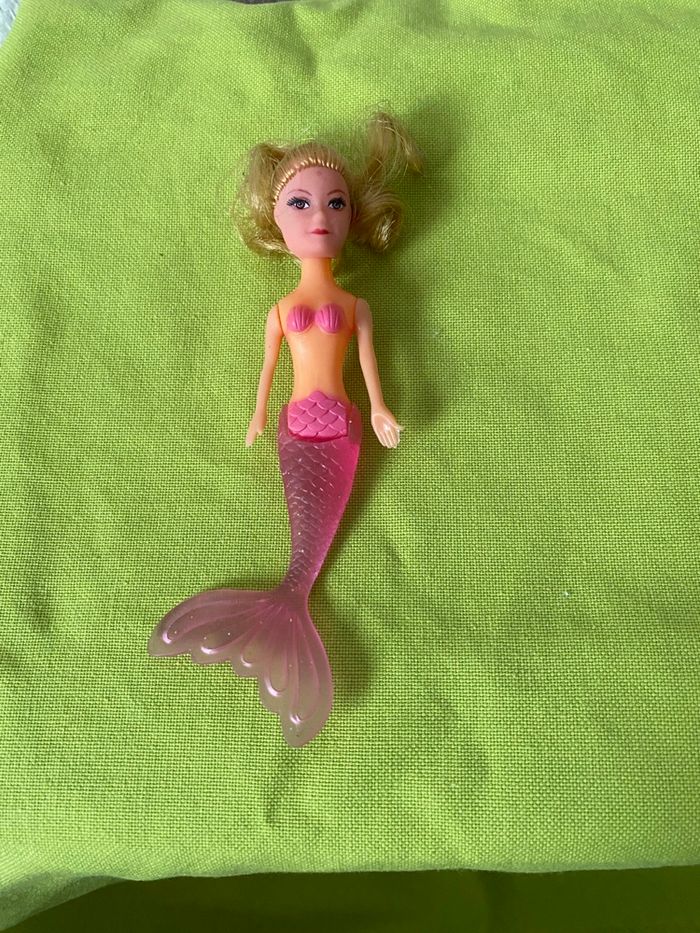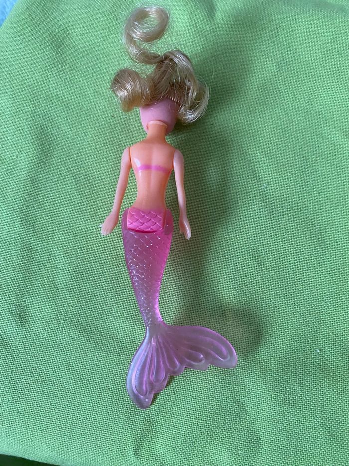 Je vends cette jolie mini poupée sirène. - Type de produit : Poupée - Âge recommandé : De 4 à 6 ans - Matière : Plastique Très bon état. N'hésitez pas à me contacter pour plus d'informations !