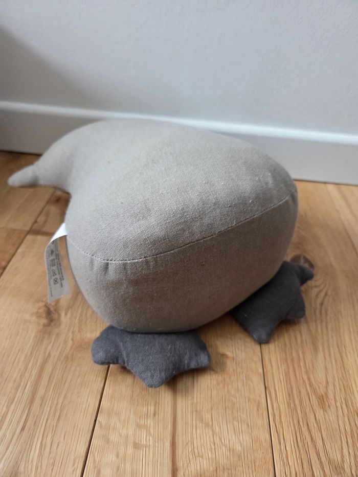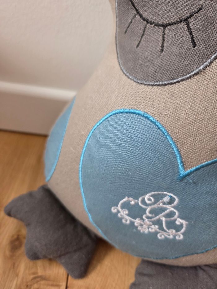 Cale porte en lin lesté hibou bleu & gris Hauteur 24 cm / largeur 23 cm Etat neuf, sans trous, sans taches
