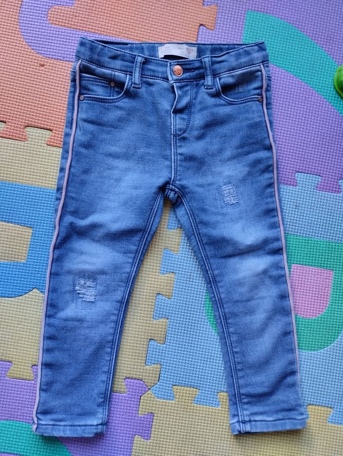 Jean slim. Zara. Ceinture réglable. Poches devant et derrière. Très bon état. Taille 18-24 mois, 92 cm.
