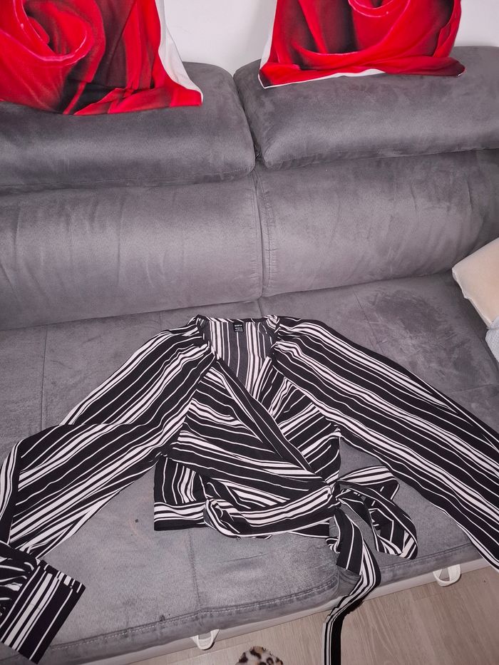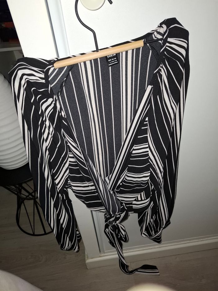 Joli cache coeur noir et blanc rayé màche longue apporte de la fluidité a la tenue. Elle se noue sur le devant