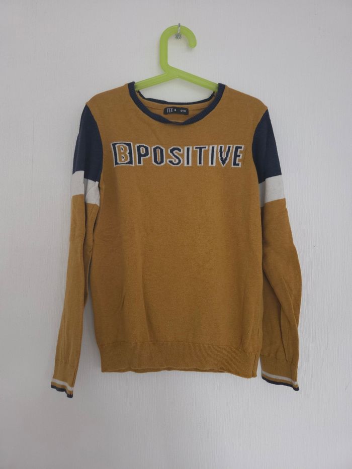 Pull unisex tex (Carrefour) Moutarde/Ocre "B Positive" - 9/10 Ans - Bon État