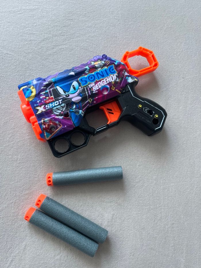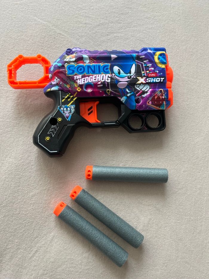 Petit pistolet type nerf Motif Sonic 3 flèches Très bon état