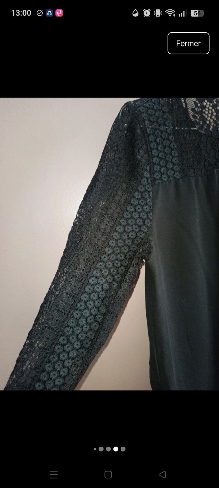 Chemisier noir, à manches entièrement en dentelle Porté quelques fois, mais en très bon état