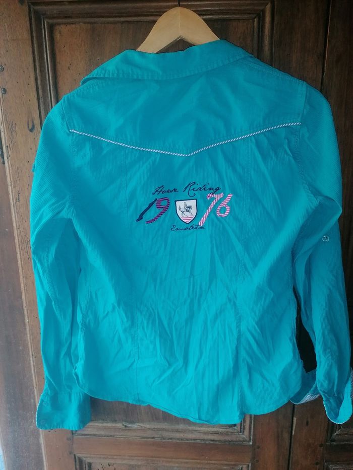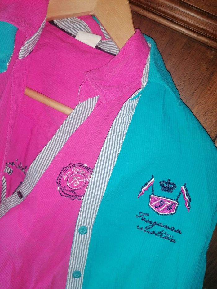 Lot 2 chemises équitation manches longues femme 40 Couleurs flashy sympas. Manches retroussables par boutons nickels. Une poche sur chaque manche. Boutons tous nickels, il manque un bouton devant sur la rose. Une fushia et une turquoise, identiques. La fushia a été portée lors de séances d'équitation, la turquoise a été portée une fois pour un réveillon, elle est comme neuve. Achetées chez Décathlon. Faites un lot, 10% de remise dès 5 articles achetés ! 🩷🐎🩵