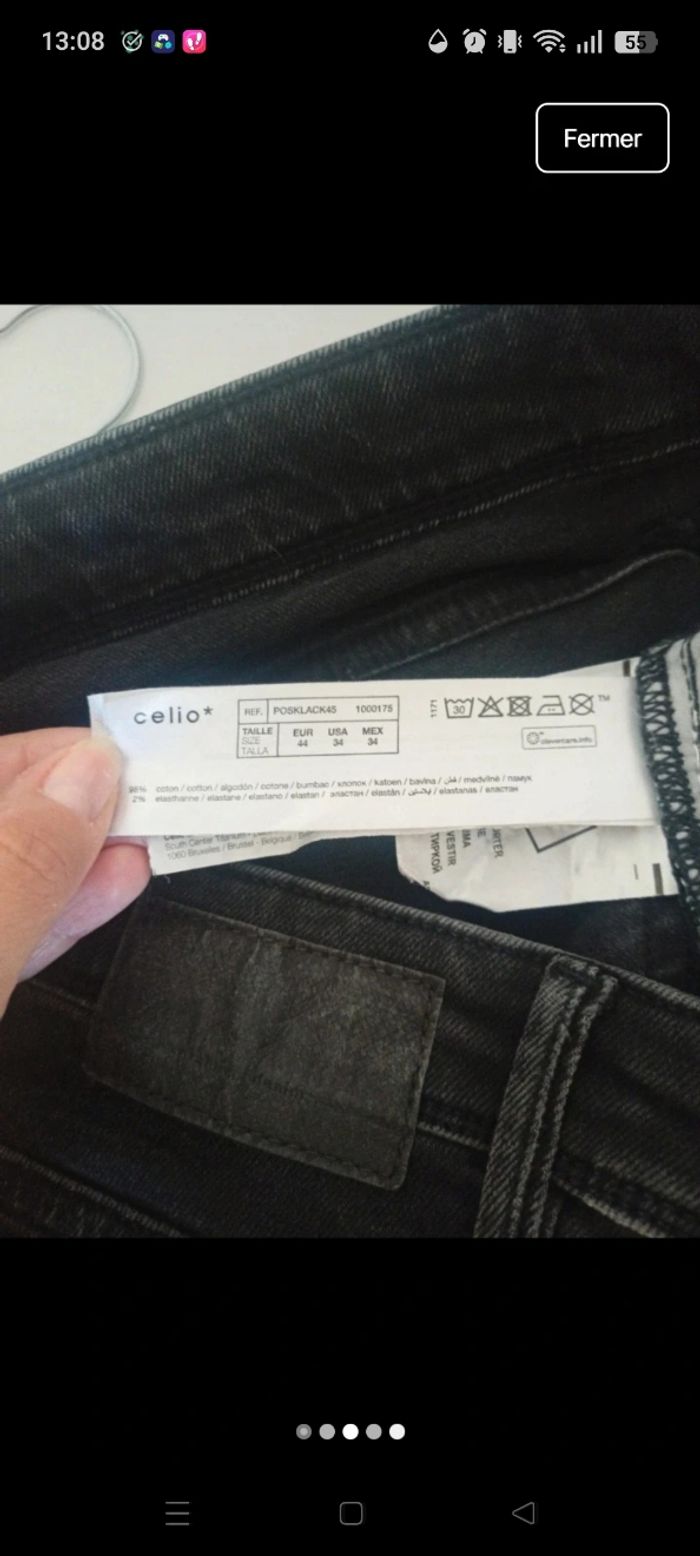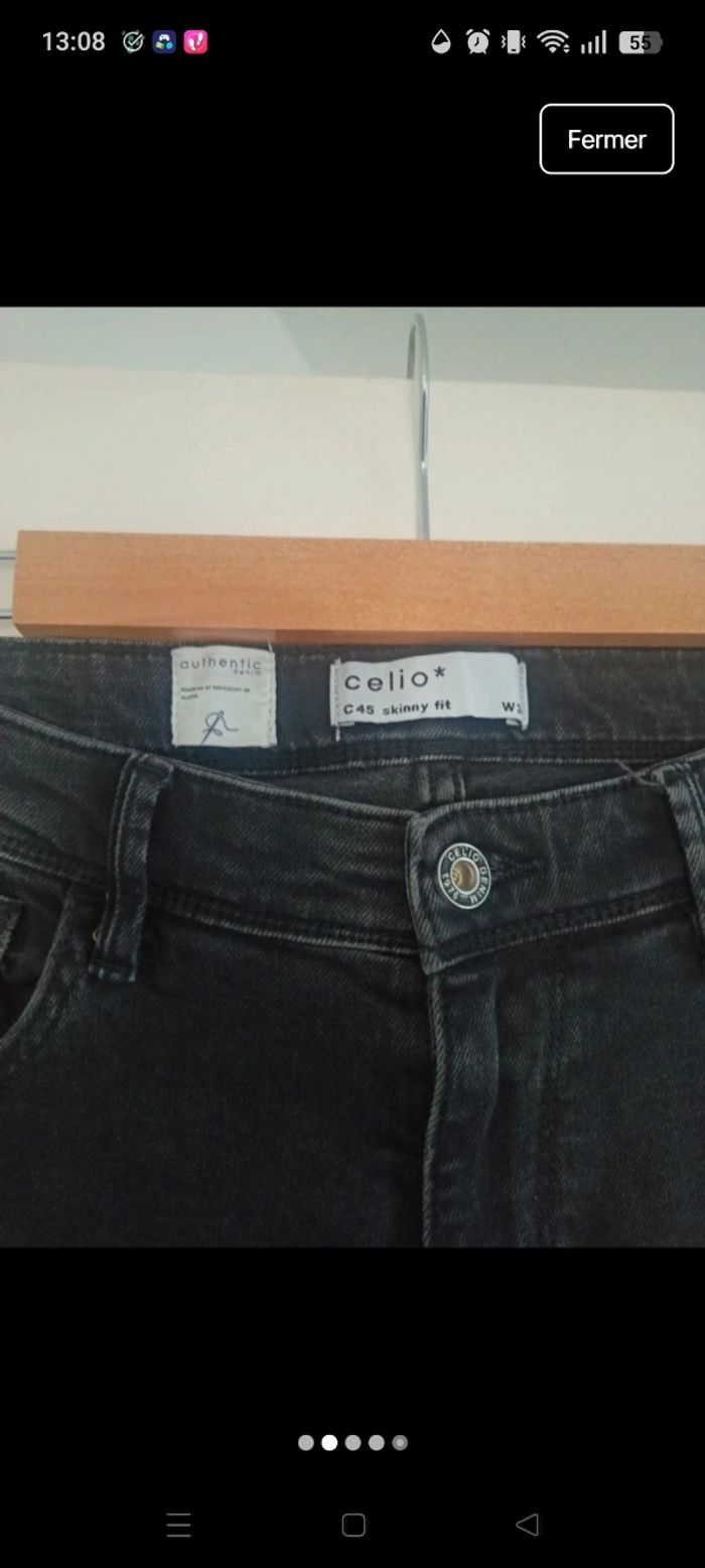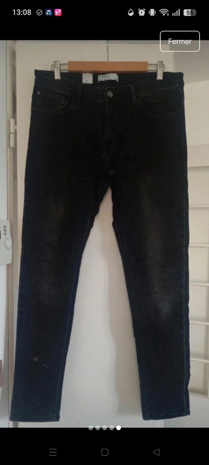 Jean Celio C45 skinny fit, couleur noir délavé, taille W34 ou 44 ⚠️ Tâches de délavé sur le bras de la jambe droite