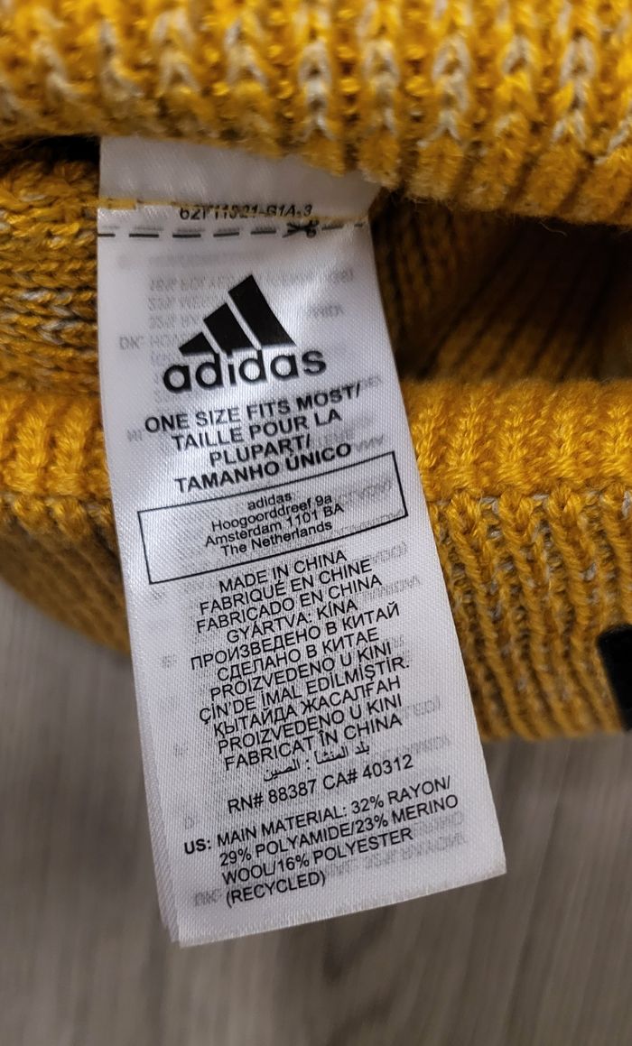 Bonnet jaune adidas Taille unique Neuf avec étiquette