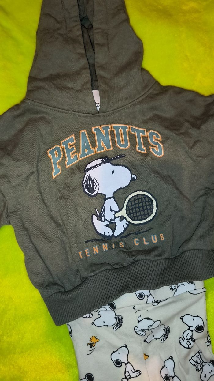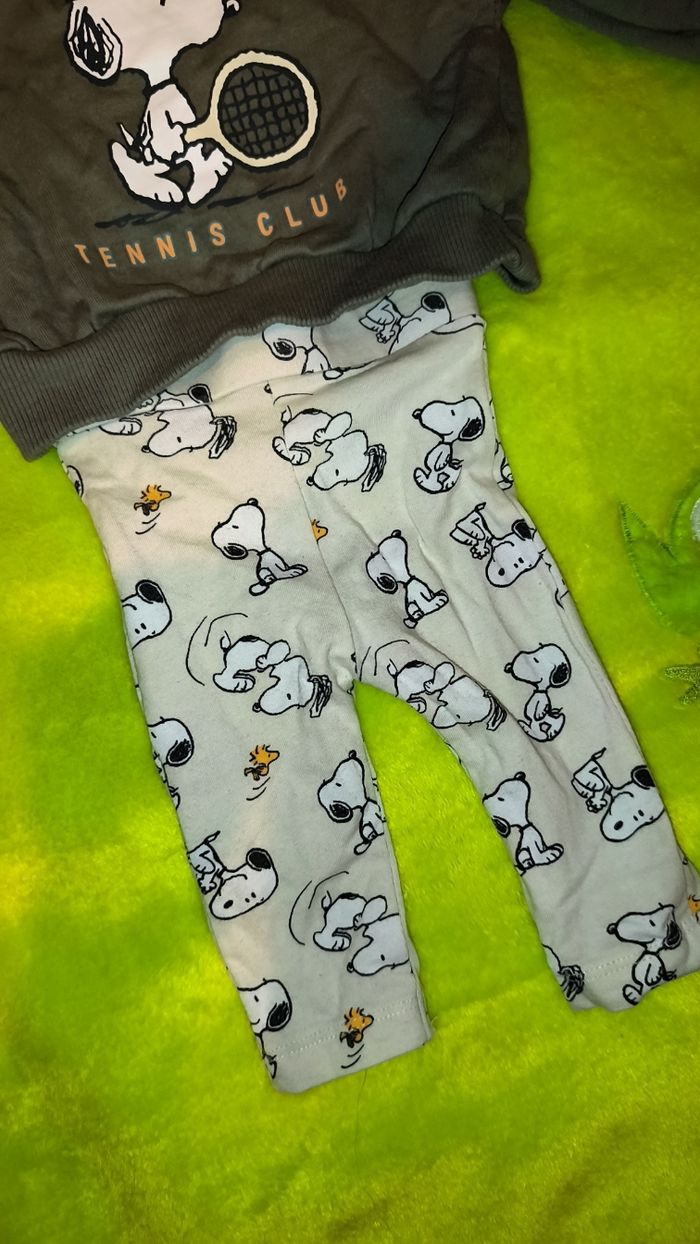 Ensemble Snoopy taille 1M 56cm Jamais portés -Pull a capuche vert Snoopy -Legging beige a motifs Snoopy