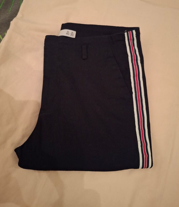 Pantalon ajusté noir t40 2 poches latérales.fermeture zip et crochet