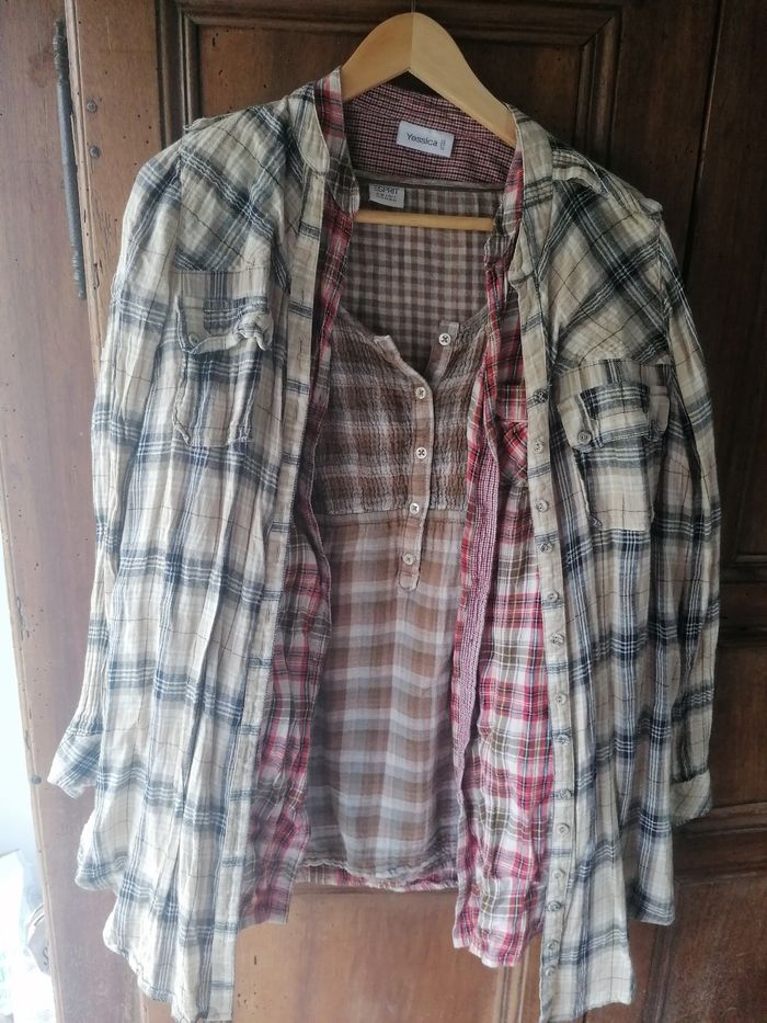 Lot 3 chemises manches longues femme 42 Couleurs sympas. Manches retroussables par pattes et boutons nickels. Carreaux écossais. Boutons tous nickels. Une beige et marine marque Mango taille XL sur étiquette. Une marron, beige, rouge marque Yessica, taille 42 sur étiquette. Une beige et grise liquette Esprit qui s'enfile par la tête. Même taille pour les 3. Faites un lot, envoi possible ou remise en main propre sur Duclair ! 🤎❤️💙