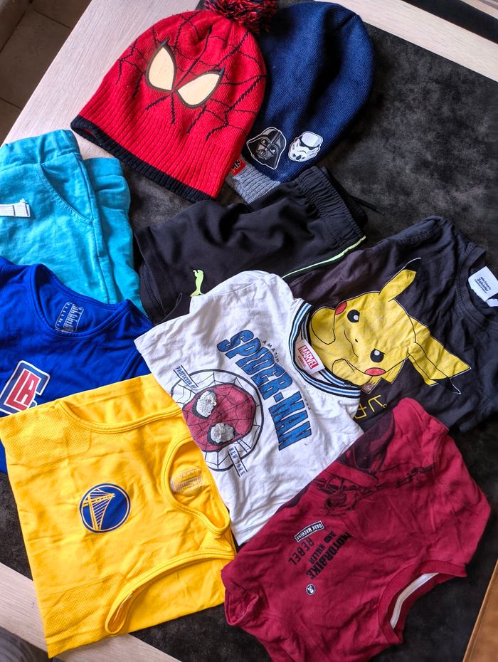 Lot de vêtements pour garçon 📏 Taille 5 ans 🏷️ Marques Puma Decathlon NBA Noz Pokemon Spider-Man...