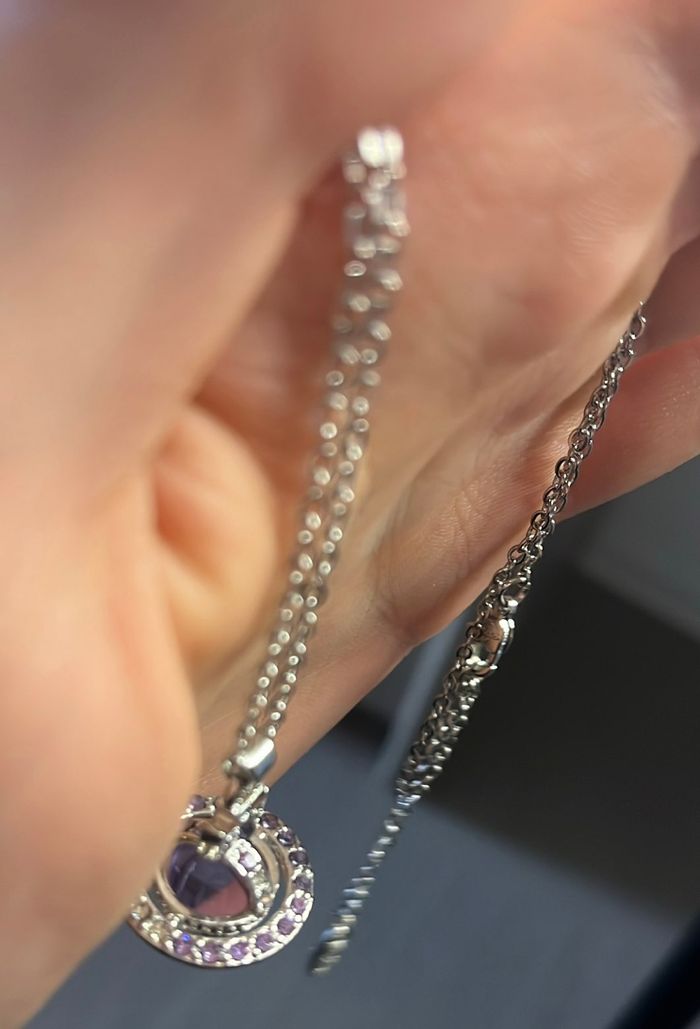 ✨ Collier Vivienne Westwood Orb – Pierre violette ✨ Chaîne élégante de Vivienne Westwood avec pendentif Orb, modèle emblématique de la marque. 🔹 Couleur : argent avec pierre violette 🔹 Motif : pendentif Orb reconnaissable 🔹 Longueur de la chaîne : environ 45 cm 🔹 Taille du pendentif : environ 2,5 cm x 2 cm 🔹 État : très bon état 🔹 Livré sans boîte 📦 Expédition rapide
