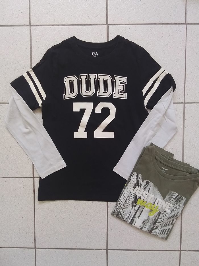 Lot de 2 tee-shirts manches longues garçon. Taille 10ans 140cm. C&A et Kiabi. Propre en très bon état. #teeshirtmancheslongues10ansgarcon #teeshirtmancheslonguesgarcon
