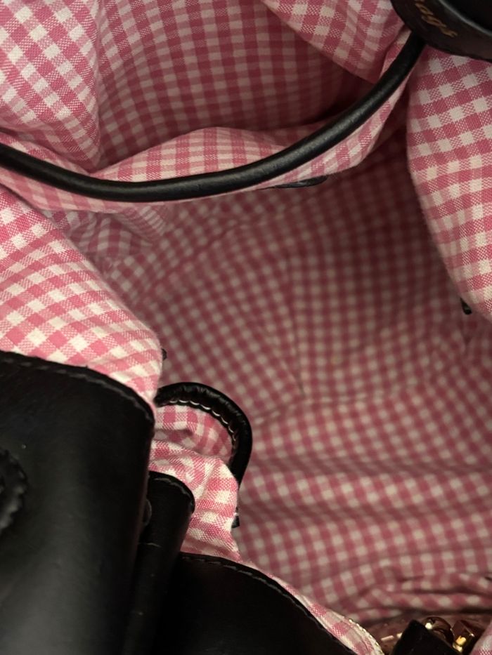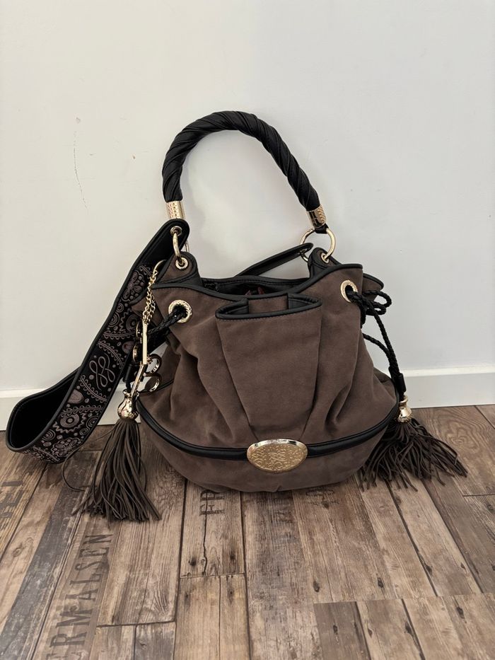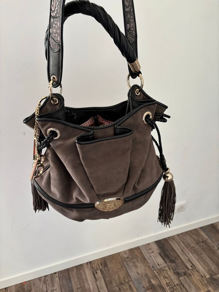 Sac à main BRIGITTE BARDOT BB Lancel en cuir et daim Couleur marron taupe Carreaux rose vichy à l’intérieur du sac pour rappeler l’esprit BB 🏖️ Le sac peut être porté en bandoulière ou porté main grâce a ses petites anses en cuir tressé Vendu avec son pochon (dustbag) Valeur du neuf : 890 euros Facture d’achat disponible Etat proche du NEUF 👌❄️🌸 Aucune tache ni trace de griffure. Le dessous du sac est en parfait état. Le sac a toujours été rangé à l’abri de la lumière et de la poussière, dans son pochon. De plus, pour éviter qu’il se déforme, je l’ai toujours rangé avec des éléments à l’intérieur pour qu’il conserve sa forme (voir photos) J’en ai pris grand soin ! Caractéristiques : Matière : bi-matière (cuir & daim) Type de fermeture : lacet de serrage Taille : 40 à 44 cm Hauteur anse (en cm) : 23 Dimensions : H: 30 x L: 40 x P: 15 cm Longueur Bandoulière (cm) : 100 Les anneaux de la bandoulière peuvent s’ouvrir (voir photos) N'hésitez pas si vous avez des questions 😊😉