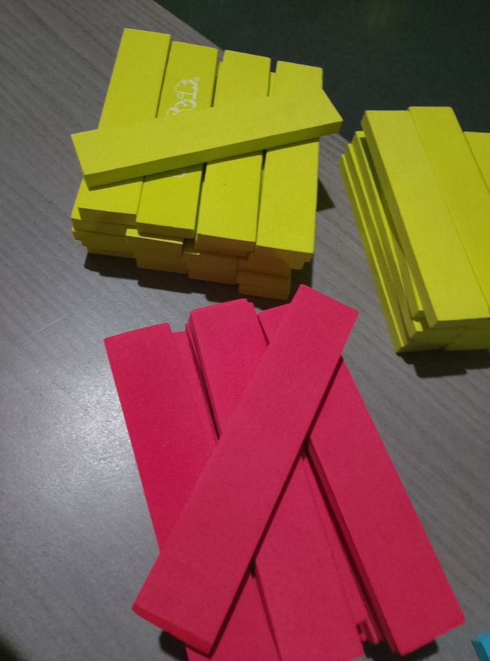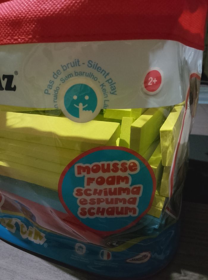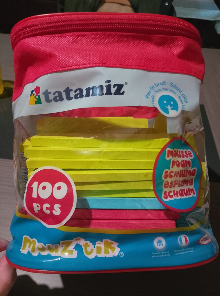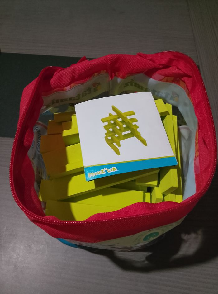 Briquettes style "kapla" en mousse Sac d'environ 100 pièces A partir de 2 ans Vendu avec sac et notice Marque: Tatamiz Etat: bon