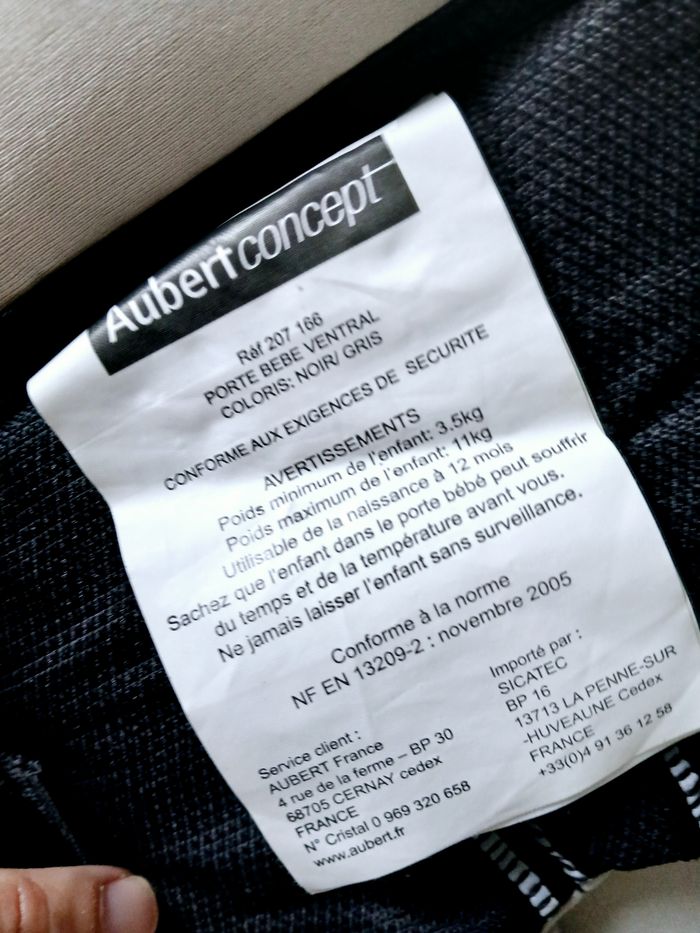 Porte-bébé Aubert Concept utilisable de la naissance à 12 mois environ (de 3.5 à 11kg) en très bon état #maternitépuericulturegael