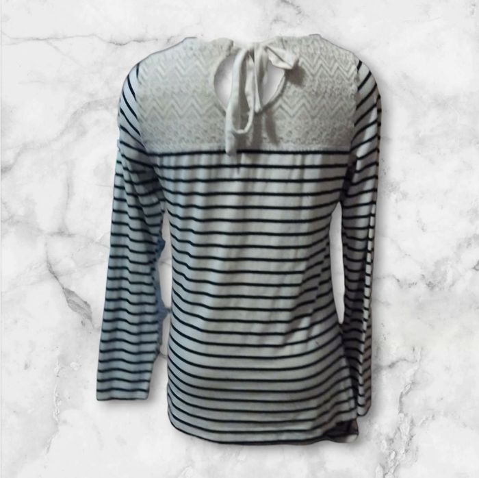 Pull de maternité à rayure avec détail dentelle, à noué dans le dos en taille M.