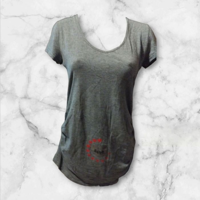 Haut gris maternité avec détail au nombril bébé entouré de petit cœur