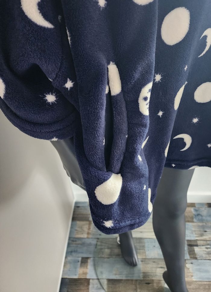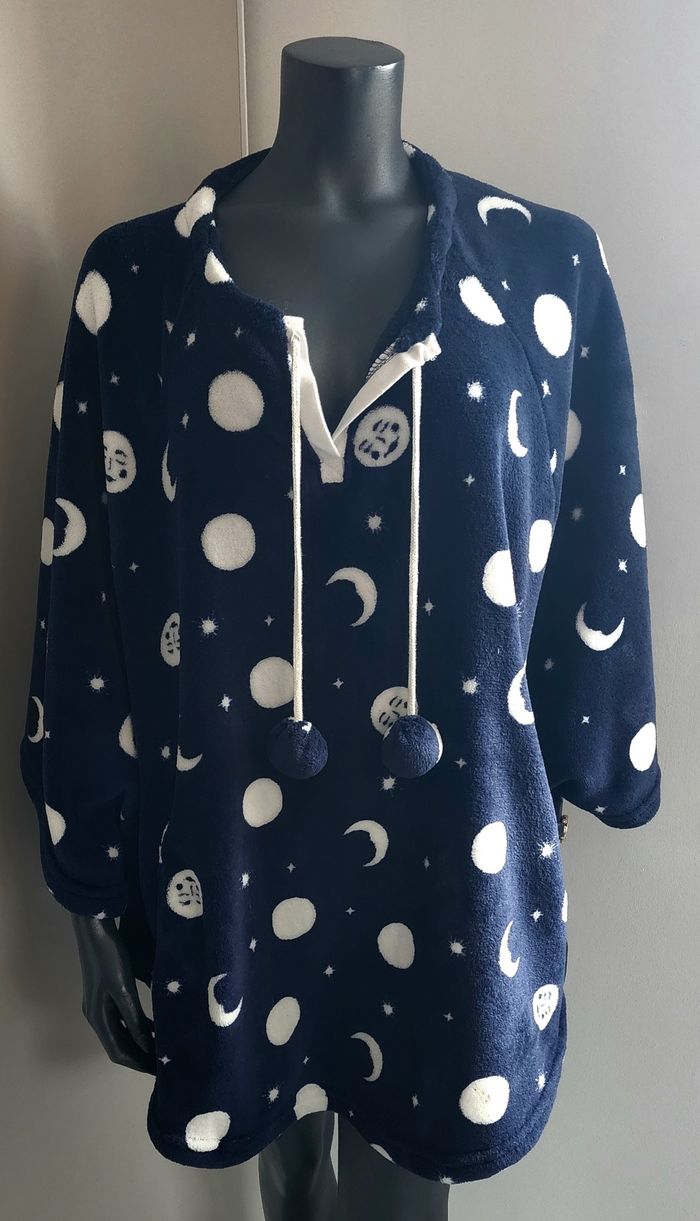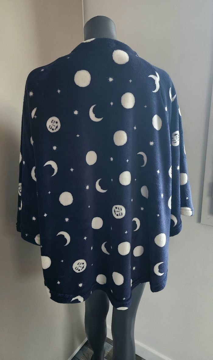 Poncho robe de chambre, tout doux avec 2 poches. Bleu marine et blanc. Va pour 38 à 42. Plus d'étiquette. Excellent état