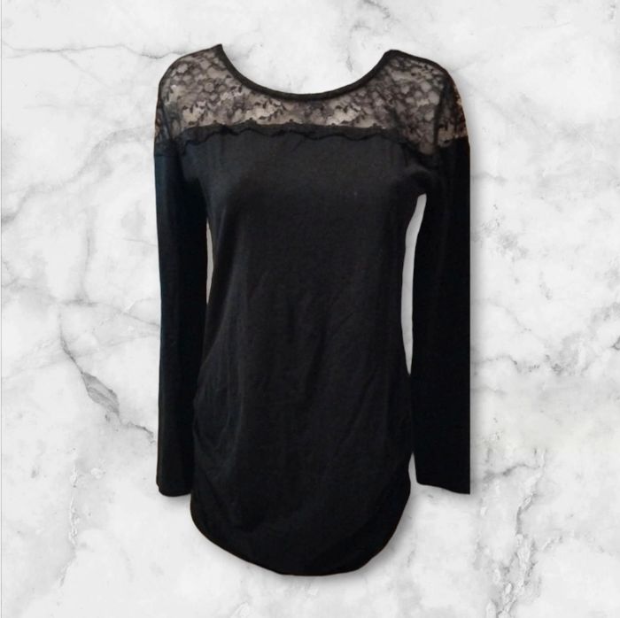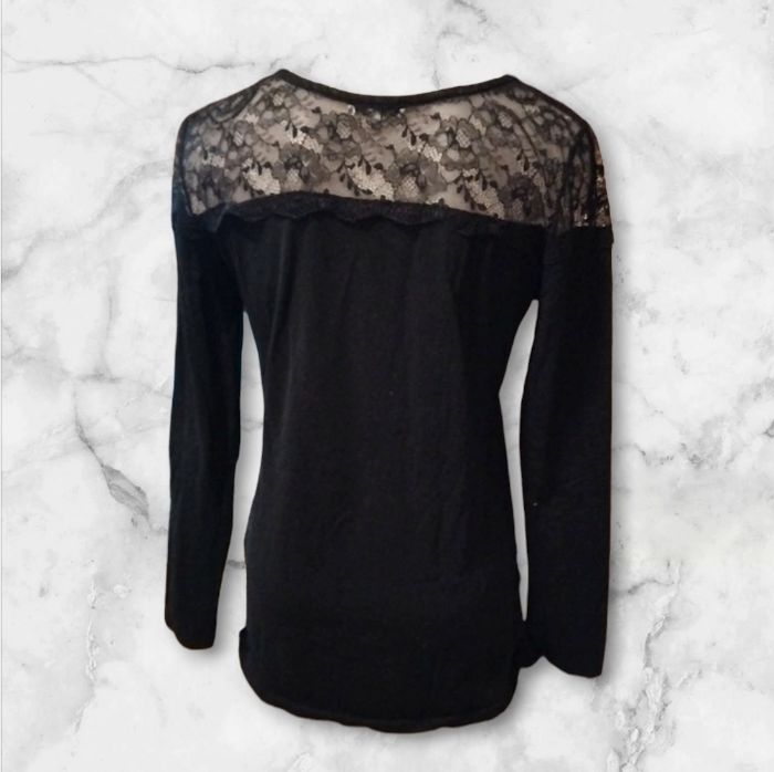 Pull en très bonne état, détail col avant et arrière en dentelle en taille L.